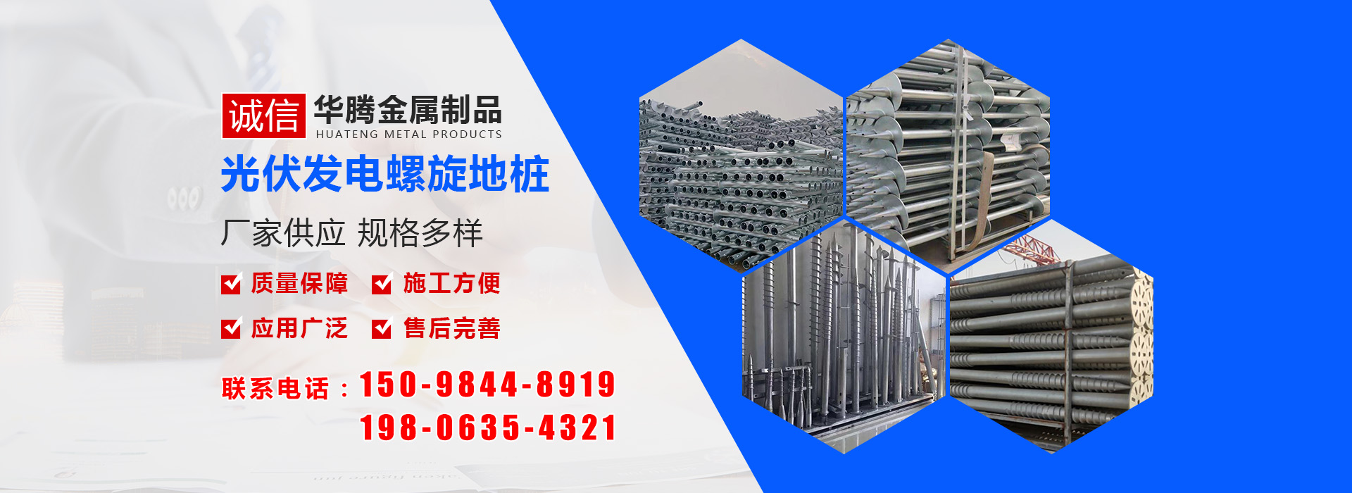 華騰金屬制品 (山東) 有限公司是螺旋地樁公司,主要經(jīng)營螺旋地樁、光伏地樁等產(chǎn)品,品種規(guī)格齊全,并可根據(jù)客戶的需求、圖紙、樣品研發(fā)產(chǎn)品。